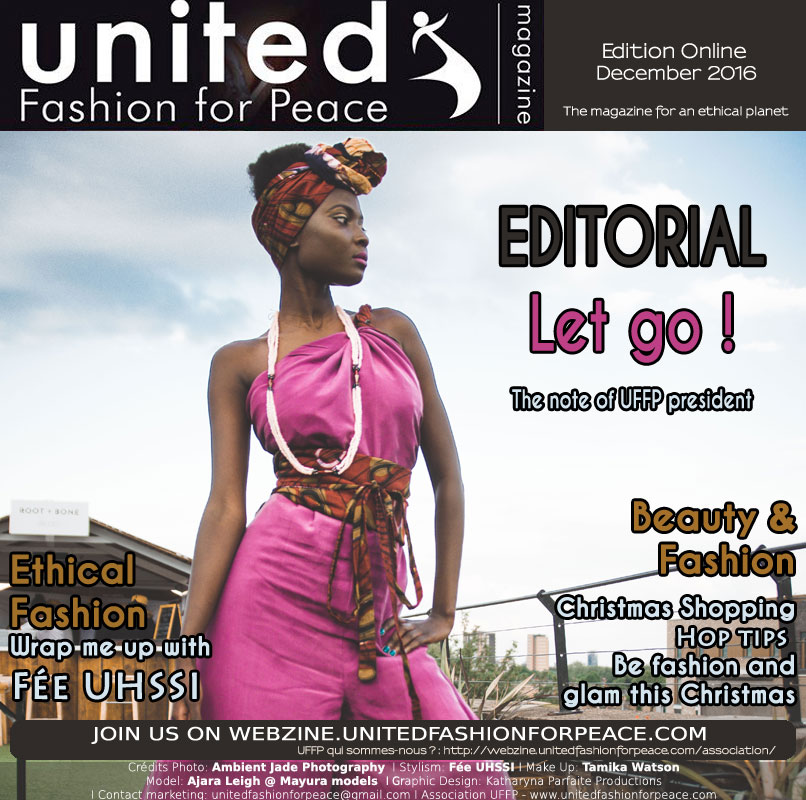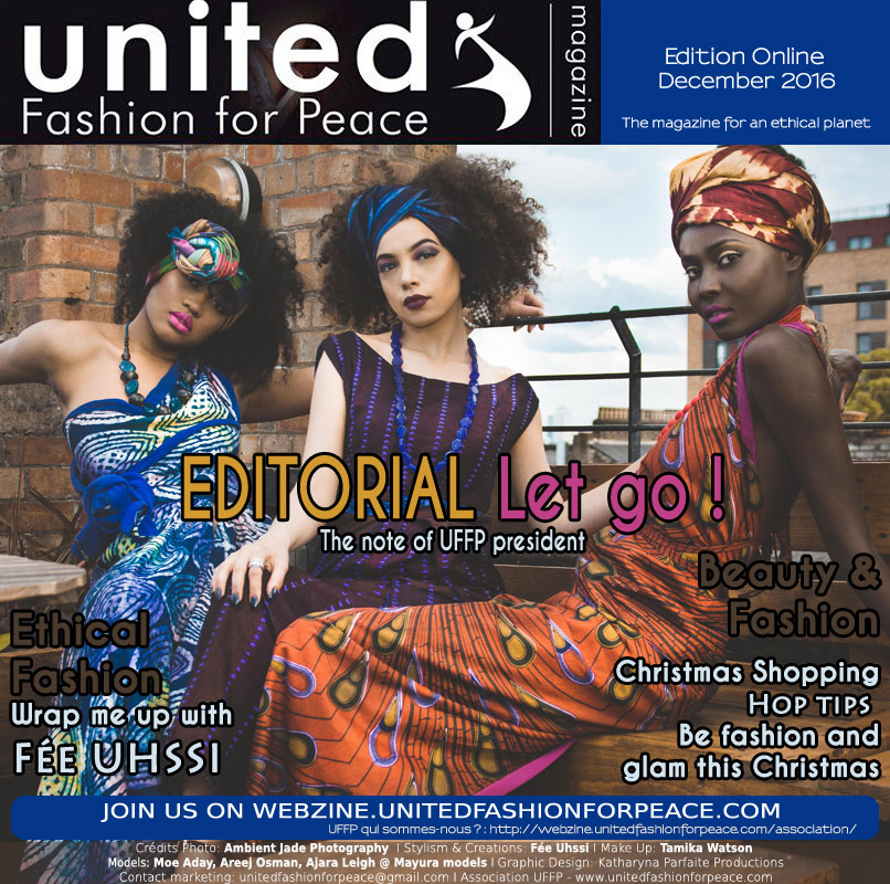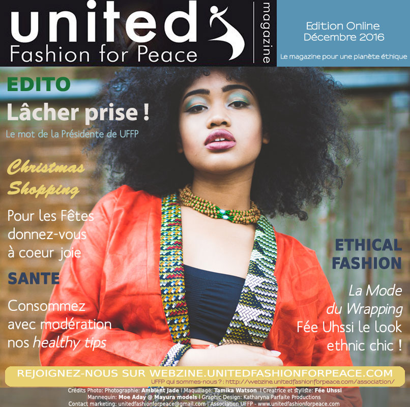 Les couvertures du webzine ont été données à Fée UHSSI une jolie créatrice engagée dans la mode éthique et qui fait de magnifiques wrapping avec des matières de toute beauté. Plein d’idées cadeaux pour les Shopping de Noel, pour la saison nous avons aussi un super concours avec une marque de beauté engagée, les roll on rose et argan de LAVYZOE.