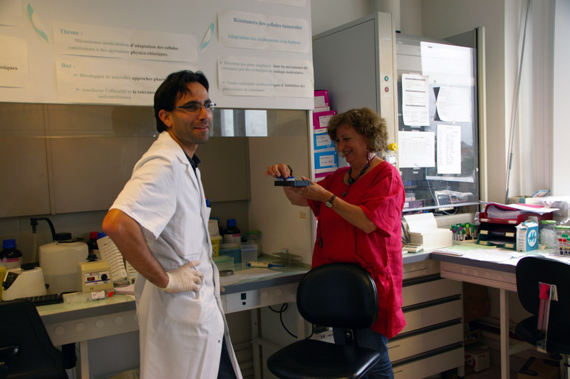 To find a way to manage toxicity, for the past 15 years Michèle and oncologist Erick Gamelin – one of ODPM’s co-founders along with molecular biologist Alain Morel – have tested the effects of fluorouracil, or 5-FU, a chemotherapy drug used to treat colorectal, breast, stomach and oesophagus cancers. Toxic side effects in their mildest forms include nausea, fatigue and hair loss; more serious cases cause profuse diarrhoea, which can lead to dehydration and even coma, and a sharp decrease in white blood cells, exposing the patient to viruses and bacteria.