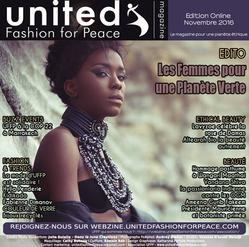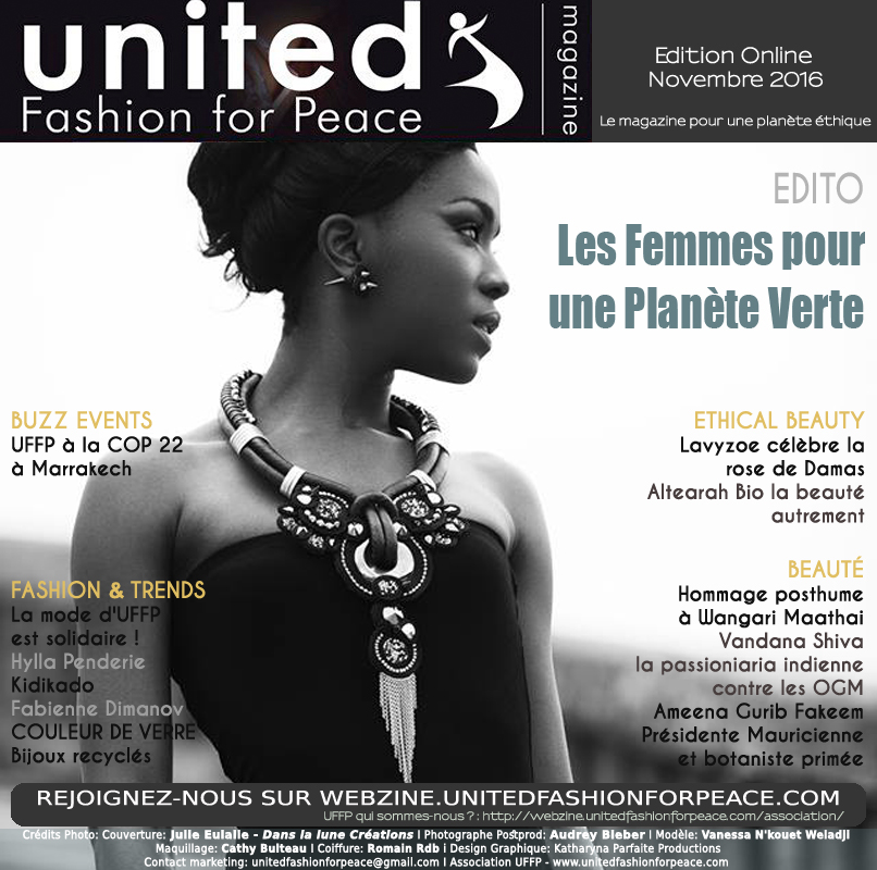 Alors cette édition,  je rends hommage à mon rôle model, la regrettée Prix Nobel de la Paix Wangari Maathai, en ce mois de la Cop 22, mais aussi à mon amie Ameena Gurib Fakim un grand coup de coeur, rencontré, il y a quelques années, sur Paris durant le prix l’Oréal Unesco, aujourd’hui cette scientifique émérite est présidente de son propre pays “l’île Maurice” et il y a en tant d’autres, du Maroc, de la Tunisie, et d’autres contrées du Monde.