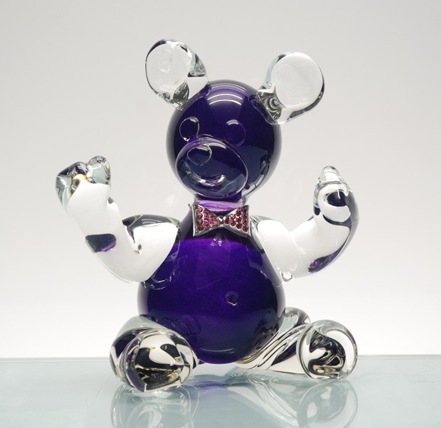 Vos yeux s’émerveilleront devant le traditionnel ours, référence de l’enfance, que l’artiste a décliné dans plusieurs couleurs et tailles, chaque pièce étant unique. Pour l’occasion, il l’a même revêtu de son plus bel habit en le parant d’un nœud papillon en argent et strass, dont il a demandé la confection à son ami, l’ orfèvre biotois Claude Pelletier.