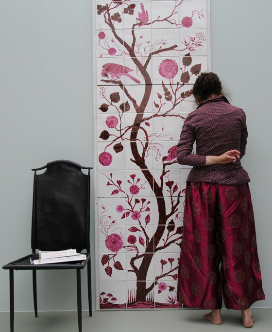 La petite boutique de Bruxelles est devenue un grand showroom. Désirant localiser à Bruxelles certains aspects de la production, un atelier de sérigraphie manuelle est monté en 2004 au Palazzo, l’ancien entrepôt d’Emery & Cie près de la gare du Midi, afin d’y réaliser à la commande, selon la technique ancienne de la sérigraphie, un projet qui lui tient à cœur depuis longtemps. Dans le même esprit du « fait main » et du « sur mesure », avec un grand choix de variantes de couleurs possibles à la commande, un four de céramiste fait son entrée chez elle en 2010 pour y cuire de nouveaux décors qu’elle invente et peint sur les carreaux unis … c’est ainsi que naît au printemps 2011 la première collection de carrelages décorés à Bruxelles, le motif Primula Arborea… vite suivi par d’autres idées qui germent depuis au fil des saisons.