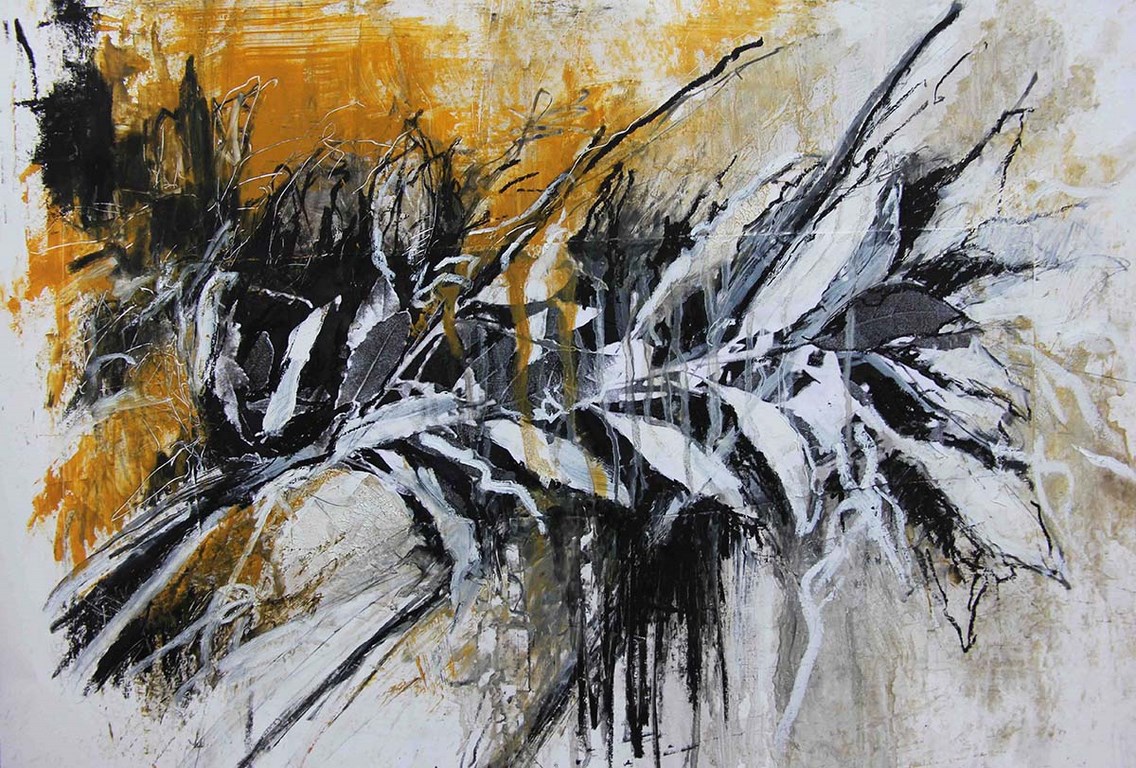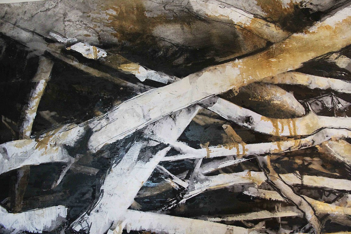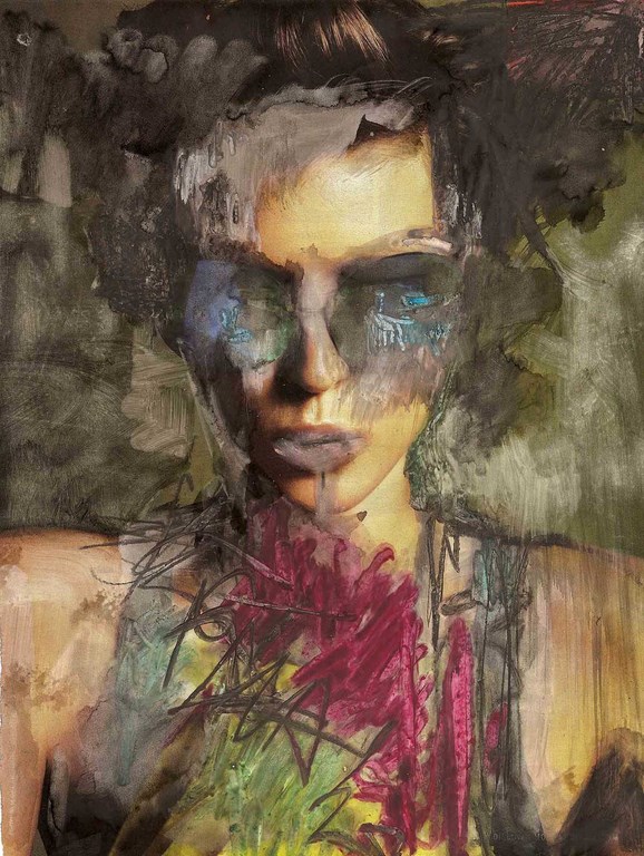 Concernant le processus plastique, elle travaille fréquemment à partir d’une image photographique avec différents médiums et s’attache à révéler le mouvement à partir de l’expression graphique. Une histoire, des souvenirs, un voyage, une forêt, un portrait… L’image photographique fixe l’instant sans égard pour affirmer ou raconter. En détournant la lumière, au-delà de l’image, l’artiste dévoile l’émotion, la poésie ou l’étrangeté ; une anatomie mouvante où les lieux, les êtres, les choses se démultiplient en plusieurs strates. Peinte, dessinée, recollée, comme une approche archéologique et sensuelle, l’image se dédouble délivrant d’autres visions sensibles.