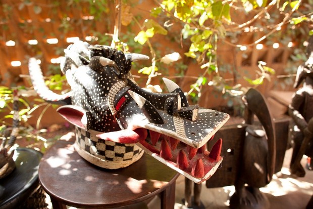Tess continue le voyage ! Déplaçant son savoir-faire, elle reconstruit à Ouagadougou et perpétue l’art de recevoir… De formation anthropologue, après l’Amérique du Sud, l’Afrique sahélienne devient sa terre d’accueil depuis les années 90. De la rencontre avec ses cultures et ses langues, Tess va se passionner et devenir promoteur de ses richesses et de ses artistes. Attenant à la maison, une galerie fait un petit tour d’horizon de l’art traditionnel avec poteries, masques, fétiches, perles ou objets du quotidien ; et une boutique aussi, où Tess a sélectionné des produits artisanaux venant de toute l’Afrique. Voiles mauritaniens, cabas, luminaires, bijoux, etc…,