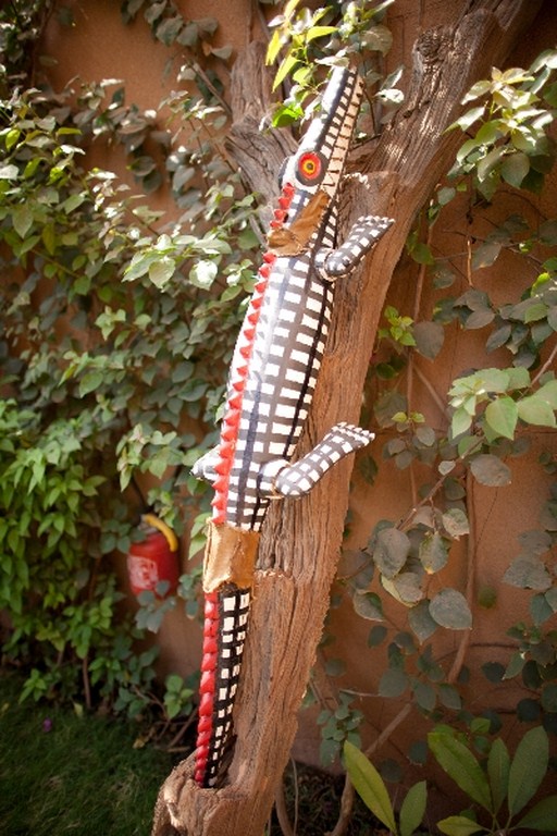 Quelques marionnettes du Mali aux chatoyantes couleurs jouent à cache-cache au milieu de ces abondantes frondaisons et habitent ce coin de paradis.