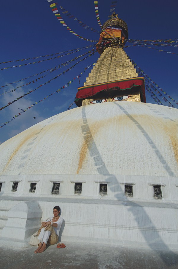 Arrivée à Katmandou pour découvrir le stupa de Swayambunath, un des plus anciens sites religieux de la vallée, perché au-dessus de Katmandou. La légende dit que la vallée de Kathmandou était un lac dont seule une petite flamme sur un lotus lui donnait vie. Le saint Manjusri venu honorer la flamme, image de Bouddha, trancha la colline de Chobar. Les eaux s’écoulèrent et les hommes s’établirent alors dans la vallée. Un roi berger aurait plus tard bâti un stupa, celui de Swayambunath, sur la petite flamme qui brûlait toujours. Aujourd’hui les fidèles tournent autour du stupa, dans le sens des aiguilles d’une montre, en actionnant les moulins à prières. Par ces gestes, ils mettent en marche la roue de la vie.