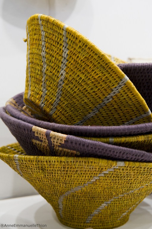 Il y avait aussi des nouveautés dans les matériels utilisés comme l´aluminium, toujours combiné avec l´herbe africaine lutindzi. Des poufs, des coussins, des lampes et les, déjà connus, cadres en bois récupéré complétaient le stand.