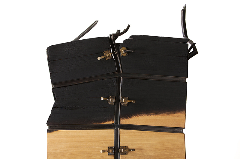 L’expression dépasse la forme … Entre le grand classique travail d’ébénisterie et le punk revival,le mobilier de E boulloud pourrait évoquer une attaque de ninja chez un collectionneur d’Art Déco.  L’humour du designer dessine un mobilier mutant évoquant l’instant destructeur au service d’une esthétique inattendue et parfaitement originale.