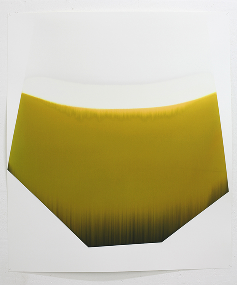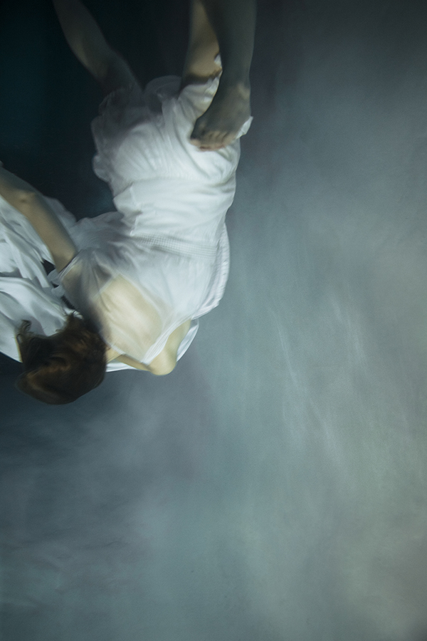 We are not made of wood, 2012, ensemble de 3 épreuves, série de trois photographies numériques sur dibond, 60 x 40 cm et 40 x 60 cm : La photographe américaine Rahshia Linendoll-Sawyer propose à travers le motif d’une figure flottant dans des environnements liquides, une réflexion sur l’acte de mourir. Le spectateur y est confronté à un corps sans visage dans un lieu abstrait. L’eau et les mouvements souples de ce corps enveloppé dans un drap blanc symbolisent cet état en suspens, entre la vie et la mort. Les séries photographiques de l’artistequestionne la condition humaine et son ambiguïté. Autre œuvre ; Untitled Place, 2011, série de trois photographies, 50 x 76 cm.