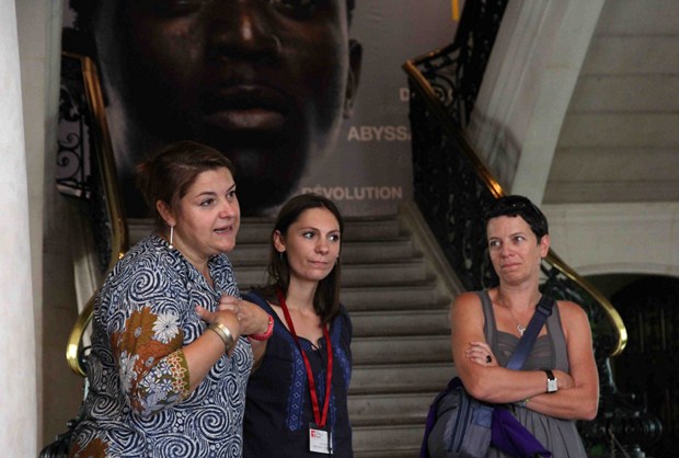 A gauche la directrice du Musée Bargouin et à sa droite la chef de projet