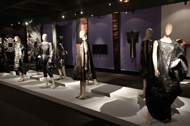 Étole en soie d’araignée, vêtements brodés en fibre d’ananas, textiles en fibre de bananier, broderies de fil d’or, lin teint à l’indigo, tressages de crin de cheval, créations en bambou, textiles métallisées, créations en feutre et mousseline de soie, dentelles inédites….