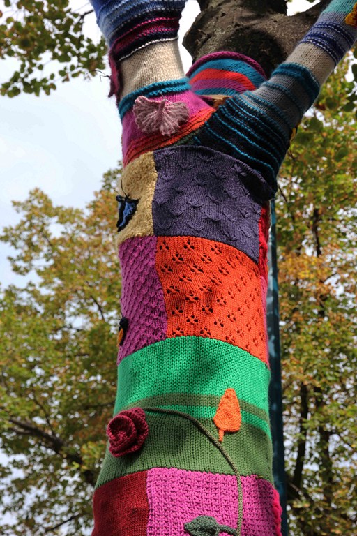 Marquant le début de cette exposition, le Festival s’est déroulé autour d’un incroyable programme proposant ateliers, conférences, projections, concerts et défilés de mode. La ville toute entière a consacré des temps et des espaces à cet événement : Des Chroniques Textiles dans 28 boutiques du centre ville à la Chapelle des Cordeliers ou à l’Espace Victoire qui a réunit des pièces textiles et des photographies de Wax et de Bazin. Réalisé par le KFé Tricot de Clermont-Ferrand, la fontaine et les arbres de la rue Ballainvilliers se sont habillés également de merveilleux et chatoyants tricotages, qui répondant aux colonnes du Musée Bargoin, donnaient un air de fête dans cette bonne ville d’Auvergne !