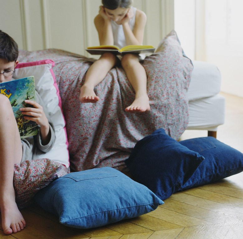 BLUE JEAN – Une gamme de taies d’oreiller et de coussins en denim très doux 100% coton. Toutes les finitions de nos bons vieux jeans préférés sont présentes sur les modèles : poches avec rivets, doubles surpiqûres ocres et matière légèrement « used ».