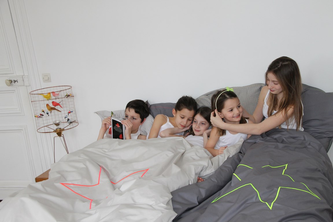 Avec son amie styliste Anne-Claire Lefeubvre (Caliesse), elles dessinent des collections de linge de lit élégantes pour les enfants et les ados.