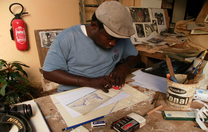 Henri Sagna, interroge la réalité sociale avec ses formes et chaque partie de la sculpture est conçue avec une message subliminal.