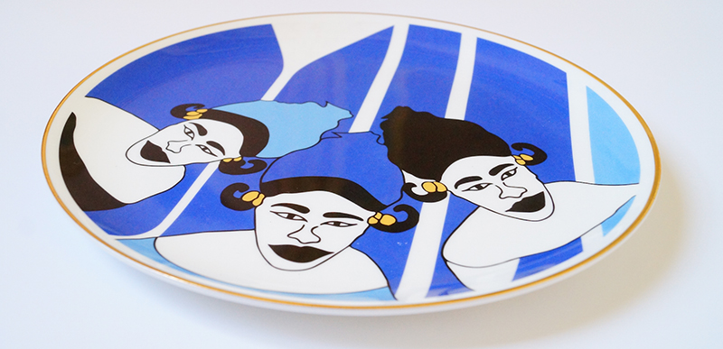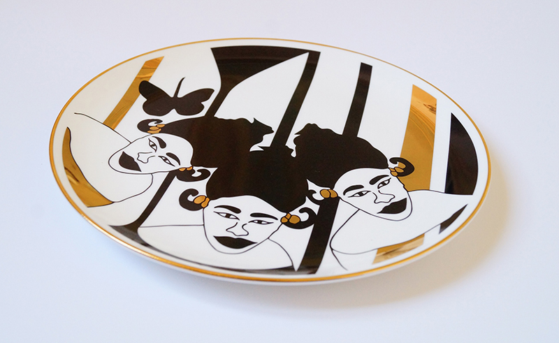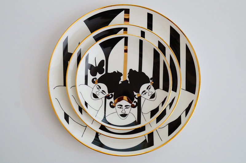 ENGLISH…. Designed in Dakar and made in Stoke-on-Trent, Nguka is a line of silkscreen printed ceramic plates designed by Fatimata Ly. The line draws its inspiration from the 1950s-60ʼs traditional Senegalese women’s portraiture. The plates are designed with heirloom colors such as blue, yellow and gold hues. Nguka is a tribute to Senegalese women from garments to hairstyle. The English Fine Bone China plates can be used as collectible or highly sophisticated tableware.