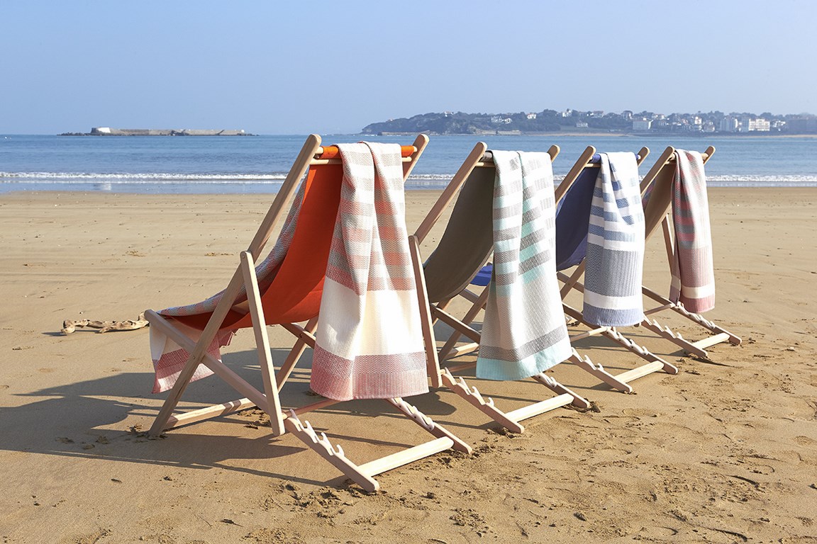« Tissée dans l’ atelier d’Ascain, la Baïna est conçue pour profiter de la douceur des plages du Pays Basque, et accompagnera agréablement vos siestes estivales à l’ombre d’un cerisier... Ce drap confortable, à larges chevrons et rayures, a un caractère unique et artisanal qui n’existe qu’ici ! » déclare Philippe Lartigue, Directeur des Tissages Lartigue.