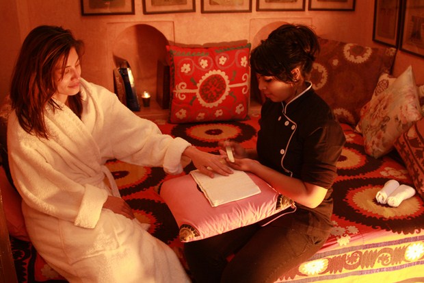 Après une manucure ou une épilation à la cire orientale dans l’une des six cabines de soin aussi fonctionnelles que cosy, on est ravis de prolonger cette bulle de bien-être dans le petit salon aux airs de boudoir pour y déguster un Thé Mariages frères ou Kusmi, servi avec de délicieuses pâtisseries marocaines.