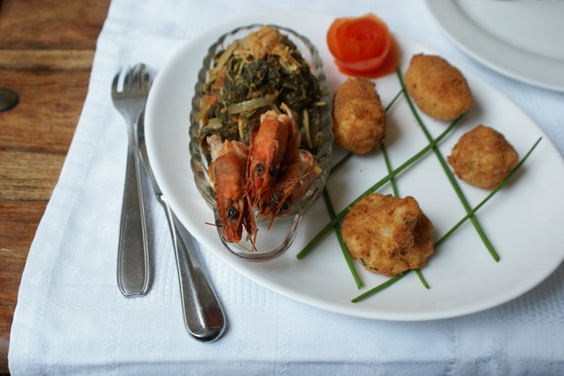 Expérience déjà nourrit par la création de l’EBN lodge, celle ci orchestre avec professionnalisme et originalité ce vaste espace. Bois, paille, rouge latérite, la décoration donne le ton. L’atmosphère est soignée et chaleureuse. Jouxtant un sympathique bar salon, une salle de 80 couverts s’organise autour de jolies tables nappées. Victor Sosso Njoh, jeune chef et diplômé, crée une cuisine aux saveurs parfumées. Légumes et fruits d’ici et de là bas, frais et choisis du jour, composent des menus métissés, de merveilleux mariages aux épices multiples et pigments à côté !