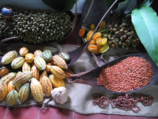 Le divin cacao pousse depuis des millénaires sous la canopée des forêts tropicales en particulier du Tabasco. Son fruit, la cabosse, contient une pulpe délicieuse et des graines qui une fois séchées, grillées et broyées, donnent une pâte, quintessence des boissons des dieux et des peuples méso-américains.