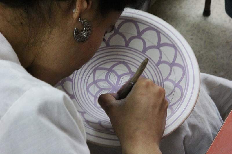 La balade au cœur du joli village de Nabeul enchante par l’abondance de ses productions artisanales garnissant les rues et les boutiques. Des couleurs chatoyantes aux motifs géométriques, les formes des céramiques sont variées et s’étalent du sol au plafond dans les boutiques spécialisées. Dans les ateliers, non loin, les artisans travaillent attentivement sur leur ouvrage répétant les gestes précis qui modèlent sur les tours et décorent avec adresse les formes blanchies par l’engobe.
