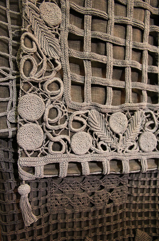 Surprenant, les voilà enfin, les vieilles dentelles crochetées pendant des heures, reliquats des longs travaux d’aiguille de nos douces grand-mères ou vieilles tantes. Reléguées au fond des tiroirs ou des armoires, chaque fois sorties, inspectées et remisées, nous désespérons un jour d’en faire quelques choses ! Véronique de Soultrait les a aujourd’hui magnifiées !