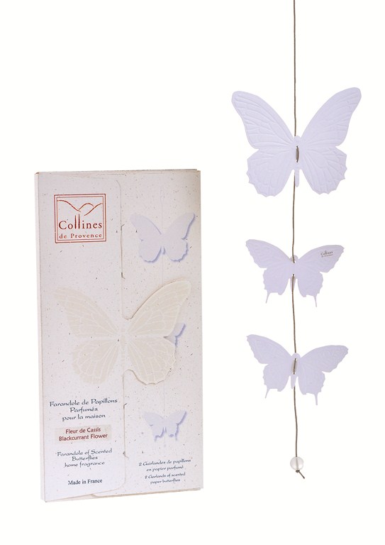 Léger, gracieux, le papillon révèle toute sa délicatesse en virevoltant parmi les fleurs des Collines de Provence. En Asie, on le considère comme le symbole de l’amour éternel et de la joie. Ces papillons en papier gaufré et parfumé diffusent un parfum discret et raffiné tout en décorant gracieusement et élégamment votre intérieur ou votre voiture…