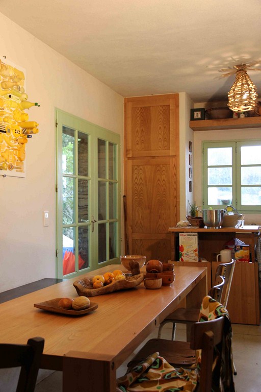 Il est de son village où trône la maison familiale. Depuis 2002, il va investir les dépendances, ou plus exactement, la maison du berger, la bergerie, la réserve de bois et la jardinerie. Toutes ces petites bâtisses sont aujourd’hui rassemblées et restaurées en bonne intelligence. Abritées par de larges figuiers, la terrasse est le centre de la maison.