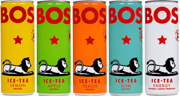 La marque BOS existe depuis 2010. Elle a été fondée par Peet Piernaar et Grant Rushmere. En Afrique du Sud, BOS peut signifier rooibos mais également désigner quelqu’un qui a un petit grain de folie. La gamme se compose de six parfums différents : citron, pomme, pêche, fruits rouges, citron vert et gingembre, citron pétillant.