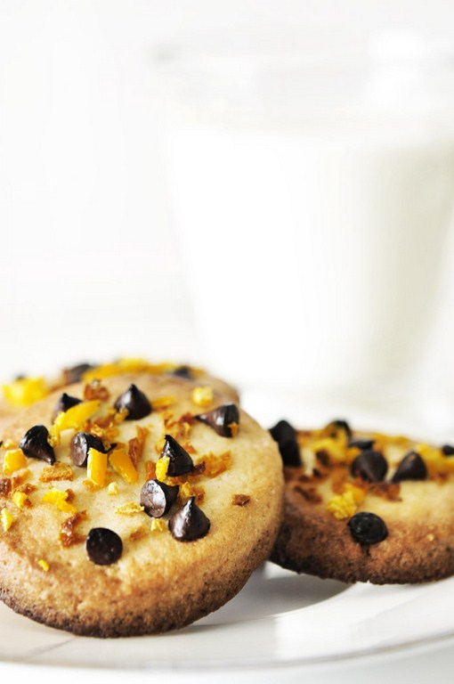 Déposer des zestes d’oranges et des éclats de chocolat noir extra fin au fructose Vivis sur chaque sablé. Enfourner pour 20 min.