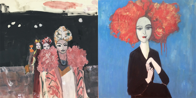 « J’aime raconter des histoires dans mes tableaux, avec une part d’insolite ou d’énigmatique qui laisse au regardeur la possibilité de broder son propre mythe. Comme un fragment de scène, avec un avant et un après libre d’interprétation, la part qui appartient à l’indicible, la perception de tout un chacun. Cette interaction ouvre de nouvelles perspectives et me donne des idées. Je veux garder une vision poétique du monde embrassant l’intemporel et l’immense domaine de la mémoire et de l’imaginaire. Je suis une promeneuse née, un grand piéton. Ce petit jeu de la promenade errante est devenu une constante existentielle. Mon œil se laisse bercer par un textile, un visage, une posture, un détail et c’est le début… » Aliénor de Cellès