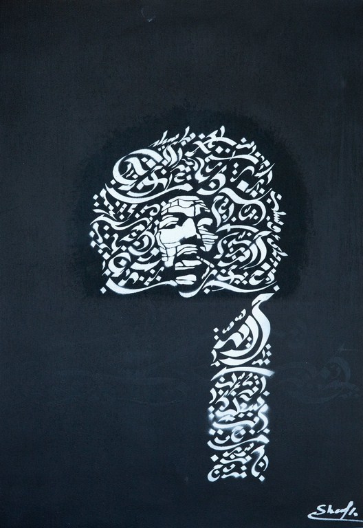 Démocratiser et désacraliser un Art bien particulier, car la calligraphie a depuis toujours été associée aux textes religieux du coran ” ce sont des formes et aujourdhui je les prend pour faire quelque chose d’universel” tel est le crédo de l’artiste qui veut communiquer de l’esthétisme et de l’émotion à travers cette matière premiére qu’est la calligraphie arabe. UFFP apprécie particuliérement ses tableaux réinterprétant le grand Jimmy Hendrix !