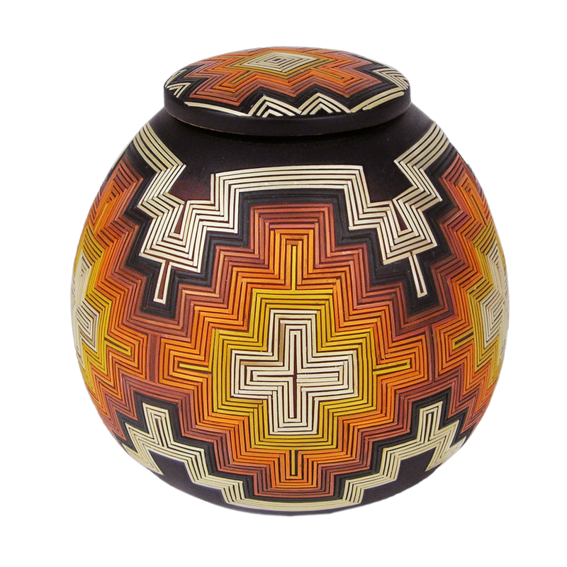 Cette bonbonnière mopa-mopa est réalisée à la main en Colombie. Deux fois par an, le mopa-mopa, arbuste local, produit une graine qui est transformée par un long processus artisanal en une feuille très fine qui prend la souplesse d’un tissu. C’est avec ces feuilles de résine mopa-mopa teintées avec des couleurs végétales, que sont ornées, à la main, les pièces en bois.