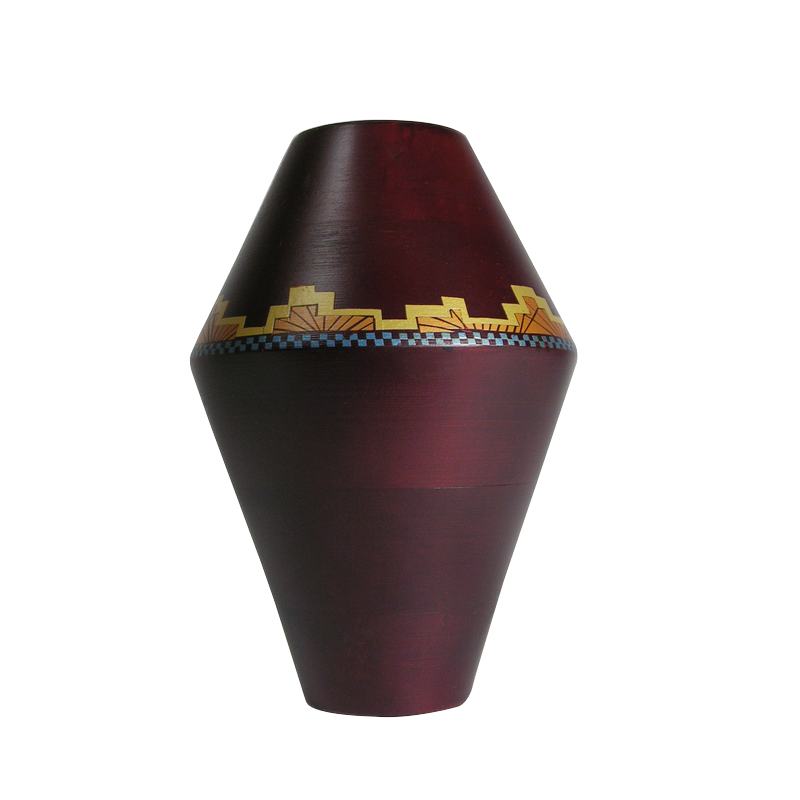 Ce vase mopa-mopa est réalisé à la main en Colombie. Deux fois par an, le mopa-mopa, arbuste local, produit une graine qui est transformée par un long processus artisanal en une feuille très fine qui prend la souplesse d’un tissu. C’est avec ces feuilles de résine mopa-mopa teintes avec des couleurs végétales, que sont ornées, à la main, les pièces en bois.