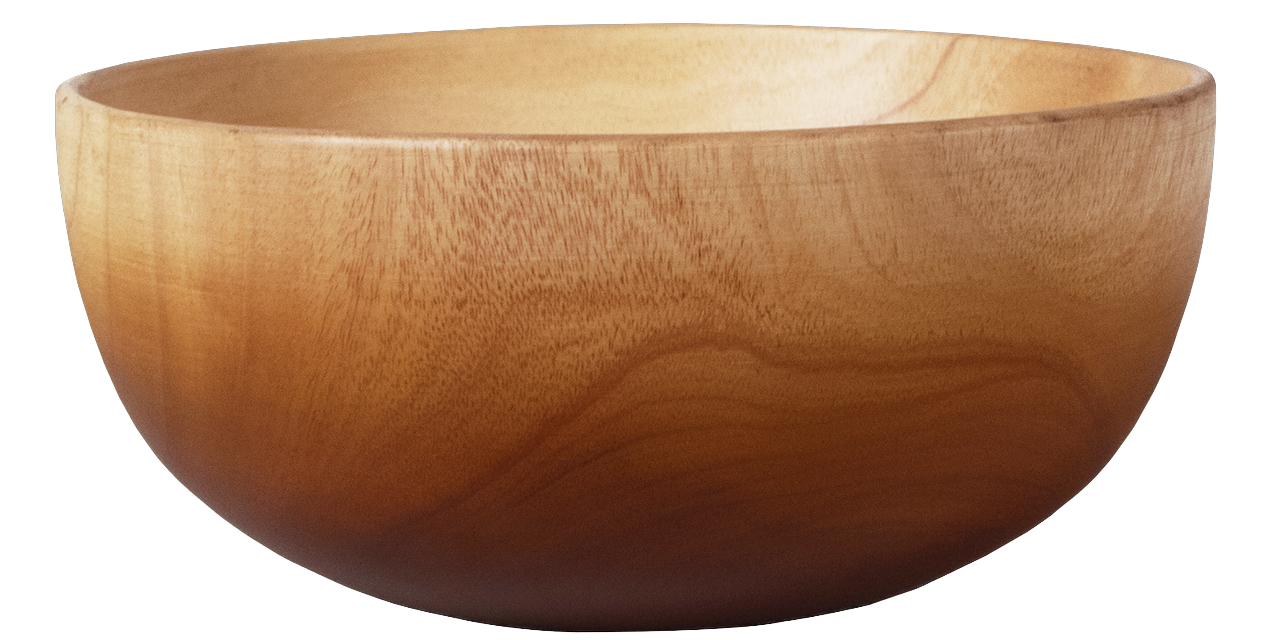 Ce bol en bois tourné est réalisé au Vietnam. Les pièces en bois tourné sont travaillées en familles à Thuòng Tim. Les formes naissent sur le tour de M. Tuân, à l’aide de gouges de ciseaux à bois, puis poncées et vernies à la main, appuyant par ce dégradé les nuances naturelles de la matière.