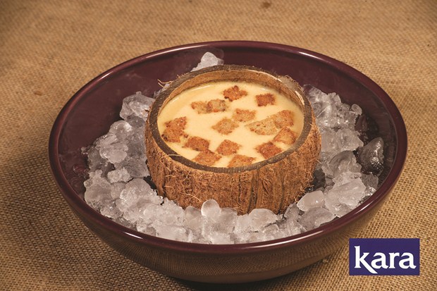 5. Mixer les carottes en ajoutant la crème de coco Kara, refroidir sur glace, rectifier le goût si besoin.