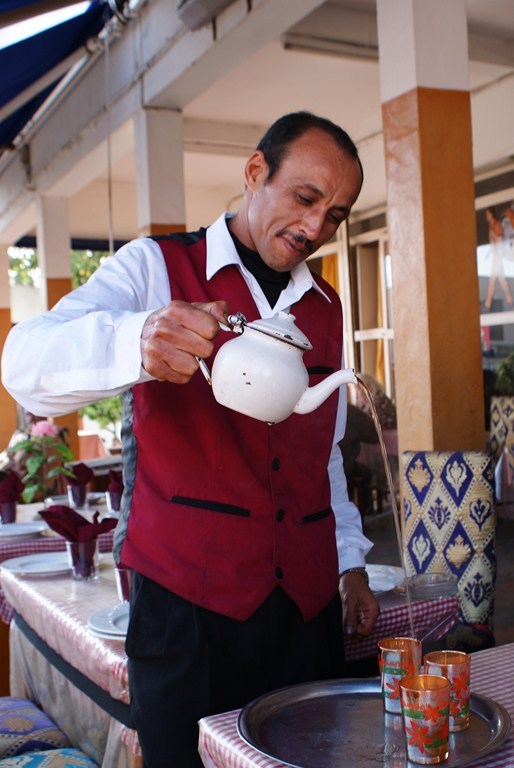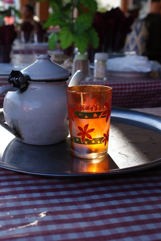 Au Maroc et malgré l’imaginaire collectif qui lui prête des origines immémoriales, la dégustation du thé est un coutume très récente. Elle date du XVIII ème et s’est popularisé à partir du XIX ème remplaçant de nombreuses infusions de plantes tel que l’hibiscus. Les thés verts viennent de chine et sont aromatisés de menthe et de fleur d’oranger. Suivant les régions et les saisons, ils s’allient aux goûts d’autres épices et d’autres plantes. Romarin, thym dans le Moyen Atlas; en hiver, on ajoute quelques gouttes absinthe et dans les plus riches maisons, l’ambre gris ou noir se place dans le chapeau de la théière.