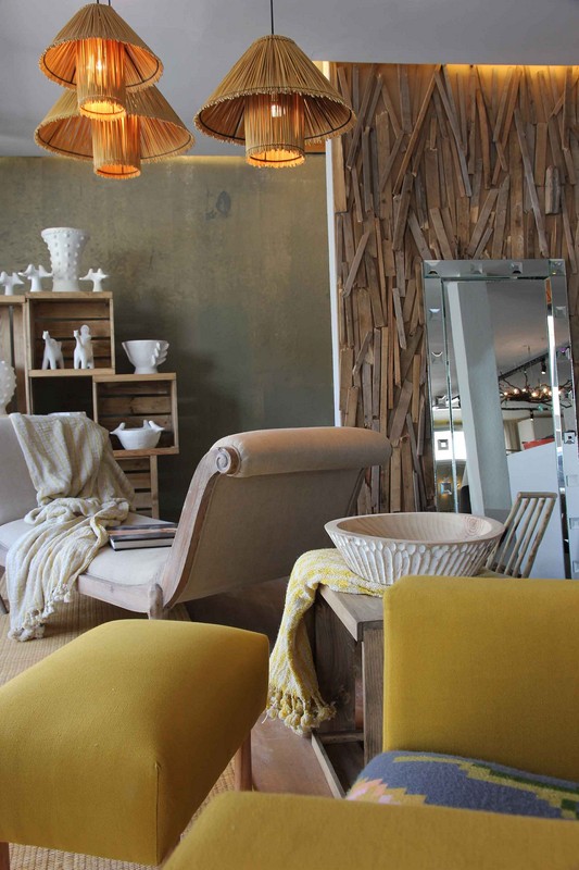 Avec les fibres végétales comme le jonc,  Salah invente un design à plusieurs positions combinant des formes pour des luminaires, lampes et abat-jours. Puis avec un fagot de branches de vigne et des éclats de verre, le designer conçoit un somptueux lustre sauvage, fonctionnel et esthétique. Yasmine n’est pas en reste et pose sa belle « pate » sur la collection Hanout.