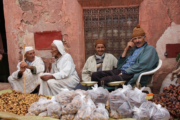 Aux premiers abords, rien de la modernité ou presque n’est arrivé jusque-là ! Des petits bus et d’antiques camions chargés « à ras bord » grimpent péniblement les pistes croisant les mulets et quelques mobylettes. C’est jour de marché à Tabant ! Depuis l’arrivée des premiers camelots, chacun s’affairent à exposer ses marchandises ; au sol sur des bâches, sur des tables improvisées, s’empilent les légumes, les fruits, les épices, les dattes et les figues séchées, plus loin, les plats à tajines, la quincaillerie et les vaisselles plastiques pour la plupart chinoises. De gros stands de fripes attirent les passants. Tout est de « second hand » venant d’Europe mais fort intéressant. Les bouchers tranchent et le dentiste arrache les dents. Ce sont essentiellement les hommes qui font les emplettes. Dans les échoppes ou les petits restaurants, Ils s’assoient entre eux pour partager les dernières nouvelles du pays en buvant le thé ou pour manger les galettes et le tajine.