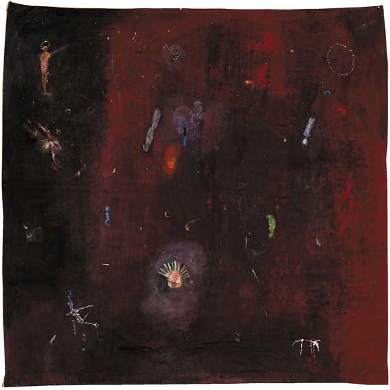 La peinture de Sagna s’inspire des mythes et légendes de l’Afrique. Son univers créatif est peuplé de références au surnaturel, à ces forces si présentes de l’irrationnel.