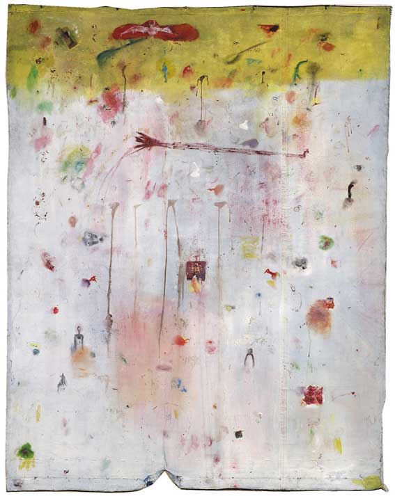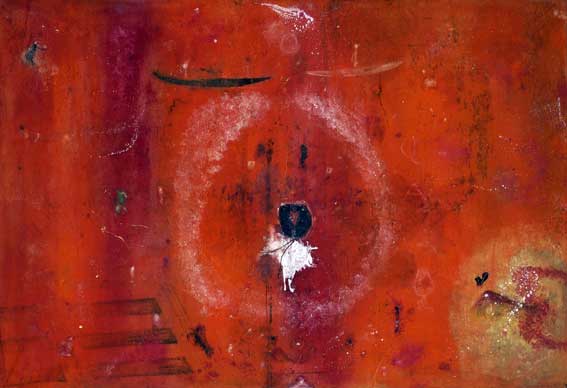 Petites silhouettes fantomatiques, hommes et femmes sont suspendus à la surface des toiles, comme des souvenirs émergeant du fond de la mémoire.